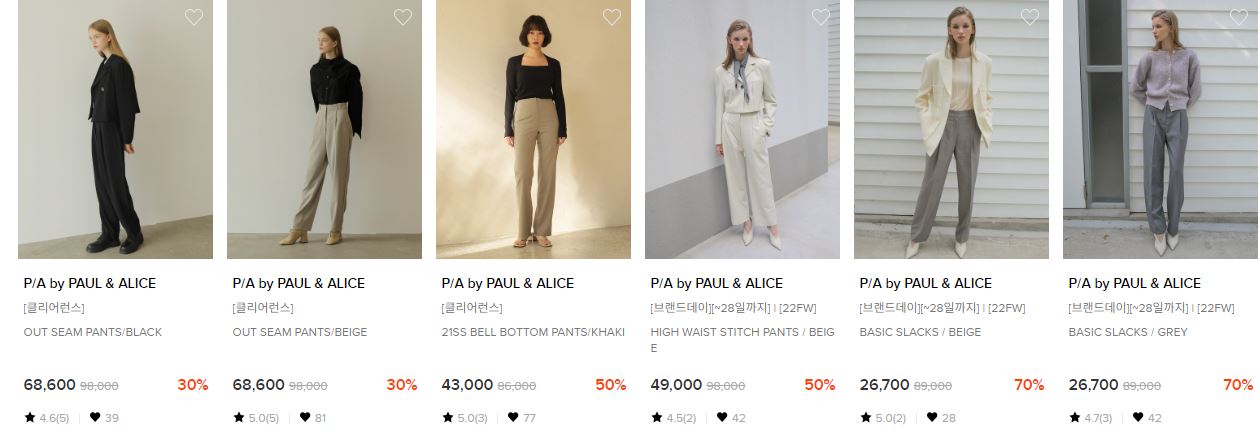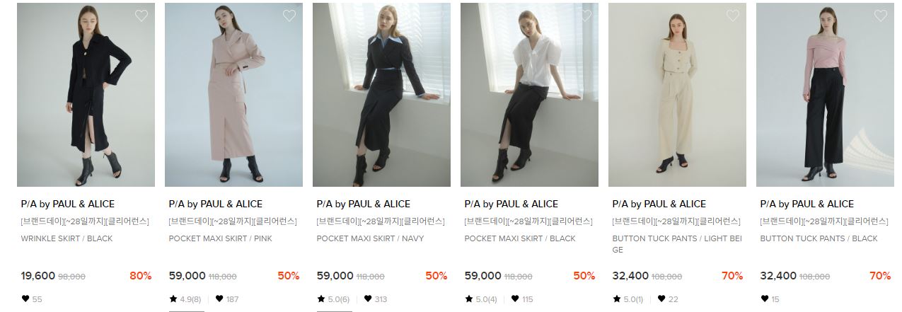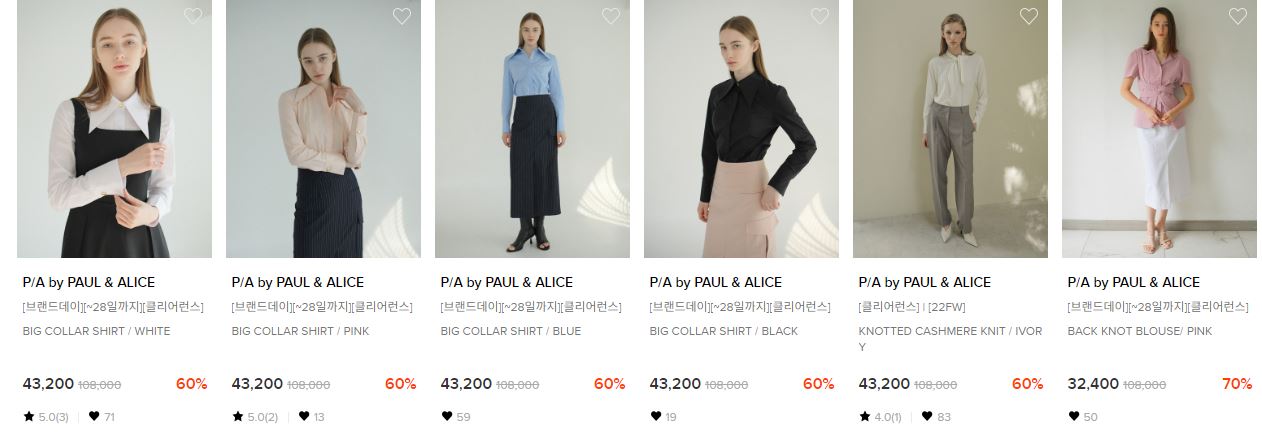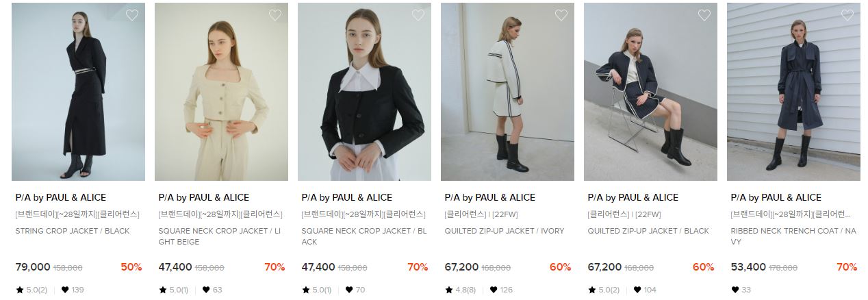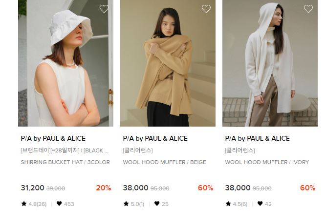 P/A by PAUL & ALICE 다양한 제품을 할인 판매하네요.