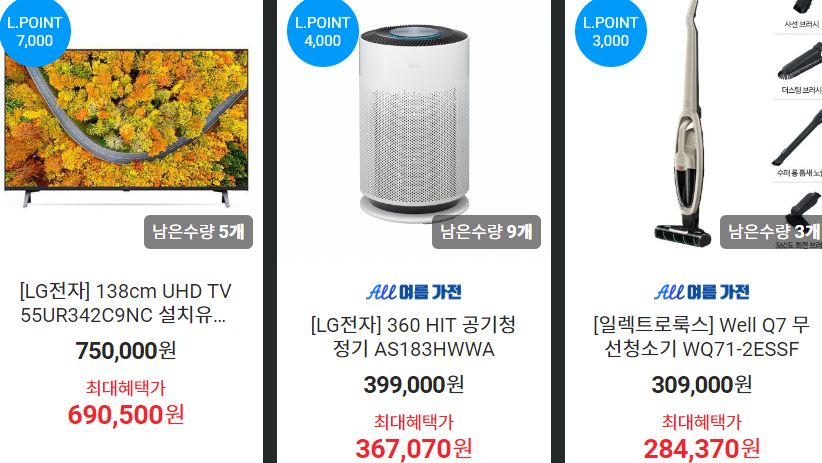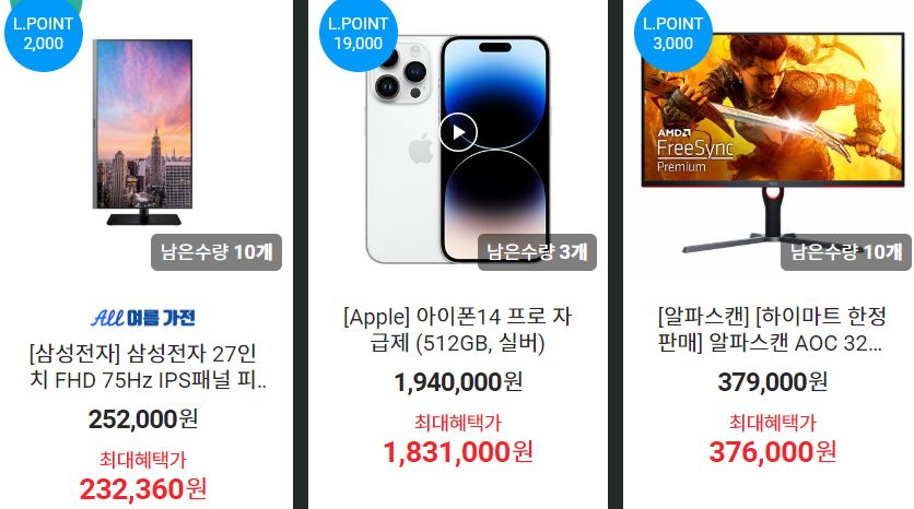 할인 품목 : 컴퓨터, 휴대폰, 모니터 등