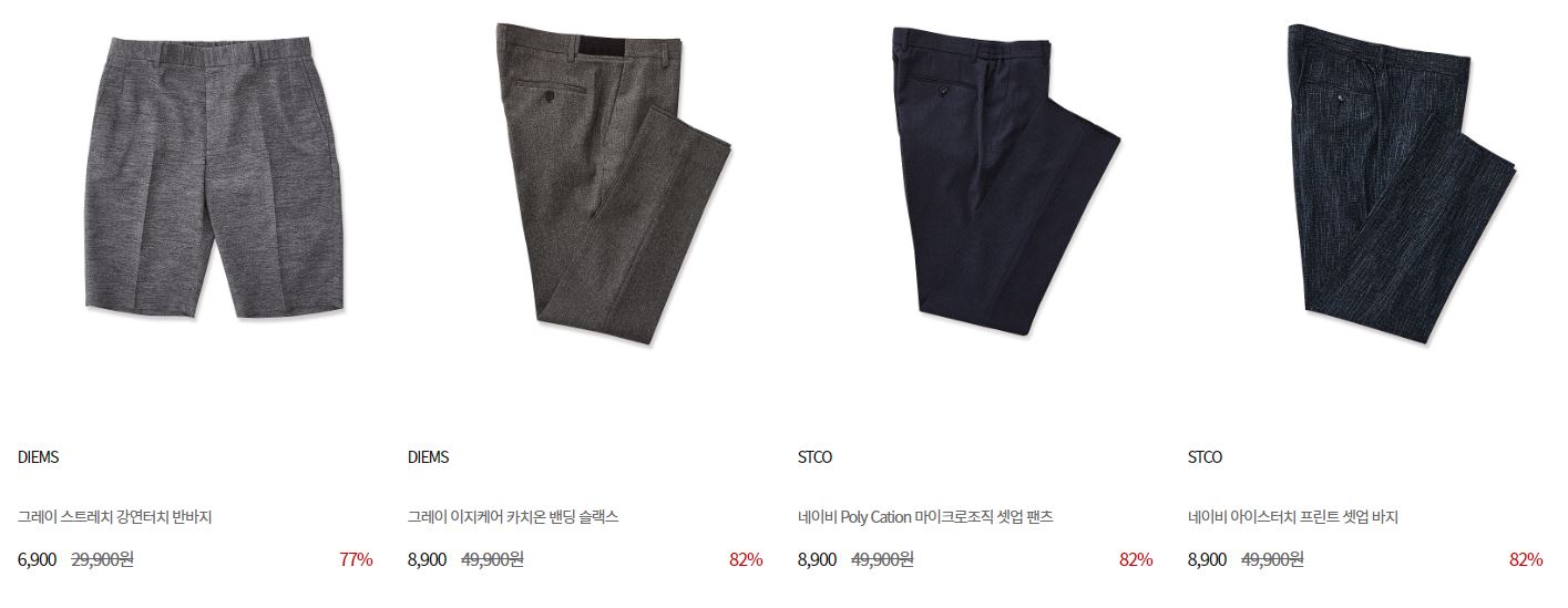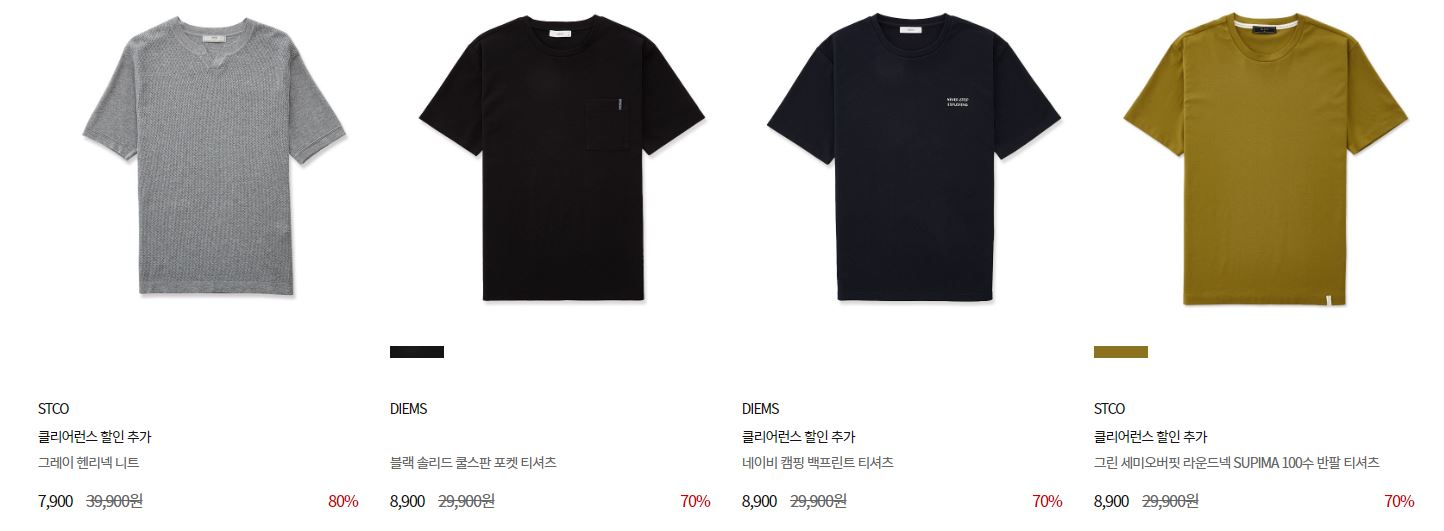 할인 품목 : 티셔츠, 팬츠, 자켓 등