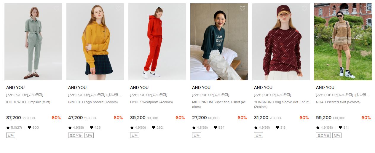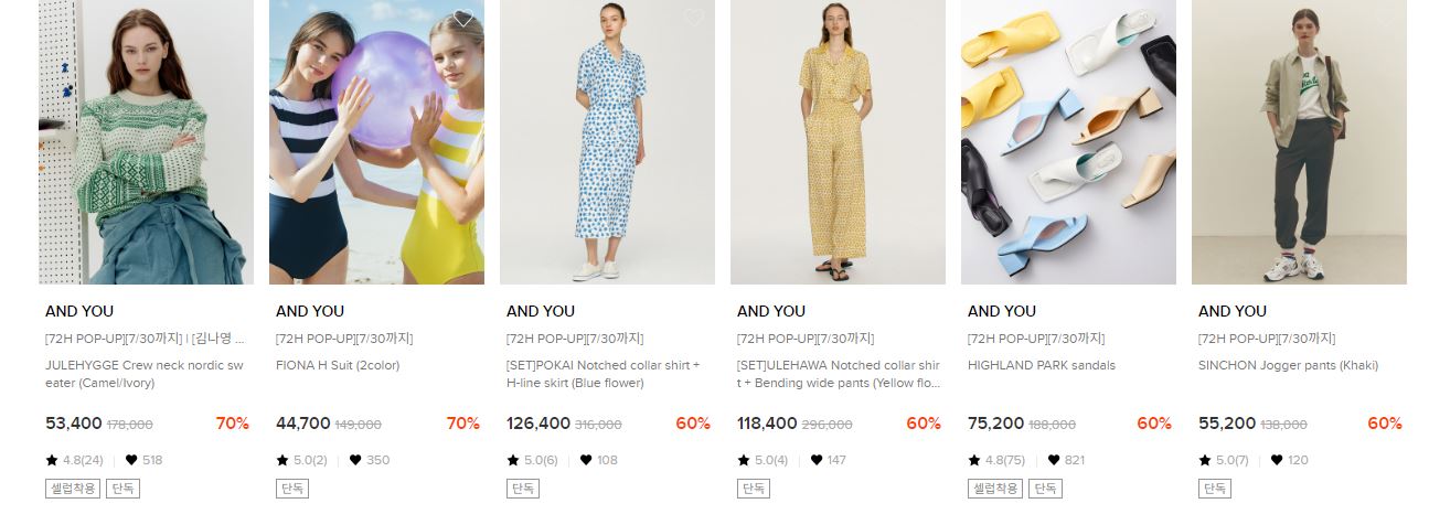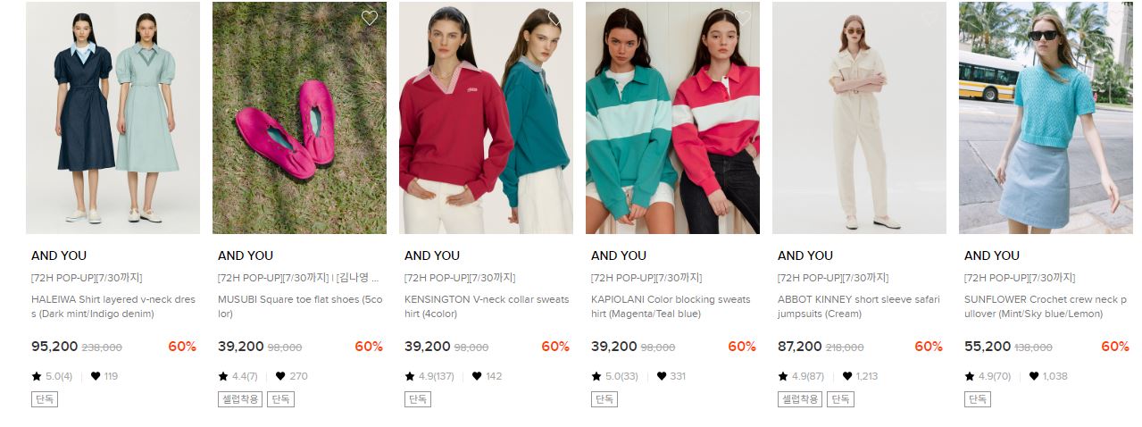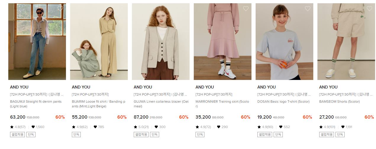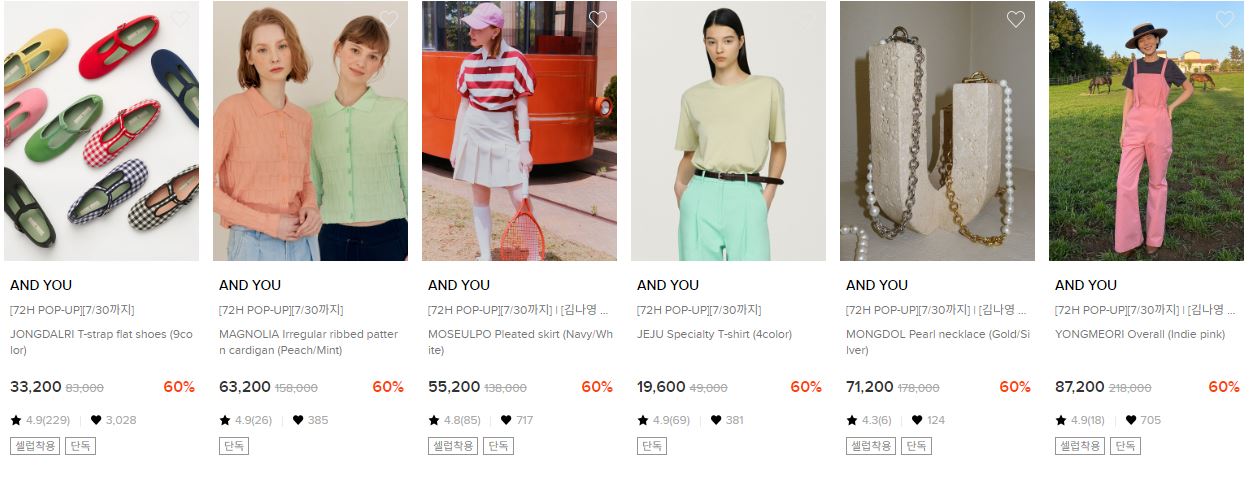 AND YOU 다양한 제품을 할인 판매하네요.