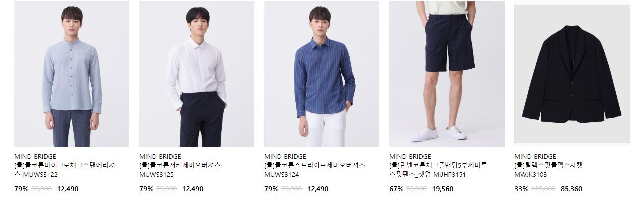 할인 품목 : 셔츠, 자켓, 티셔츠 등