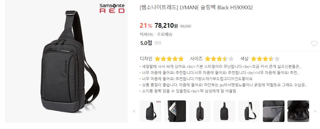 할인 품목 : 캐리어, 슬링백 등