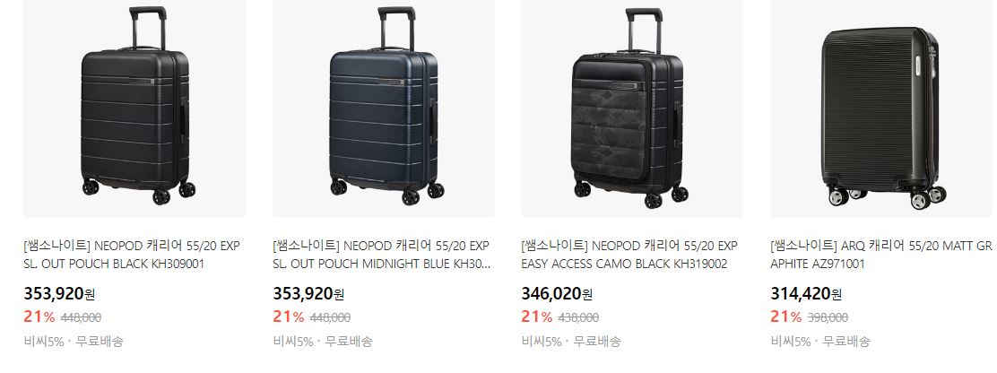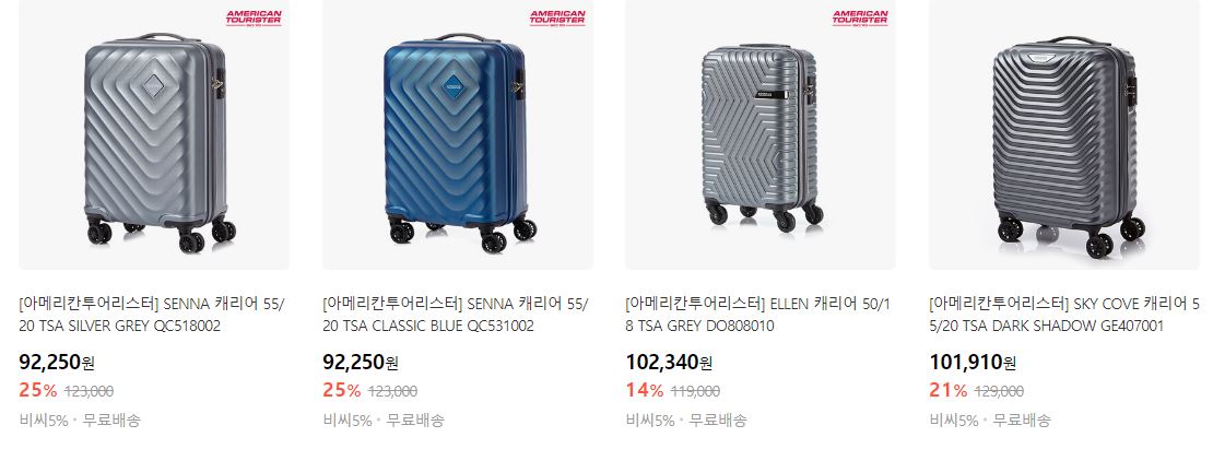 할인 품목 : 캐리어, 슬링백 등