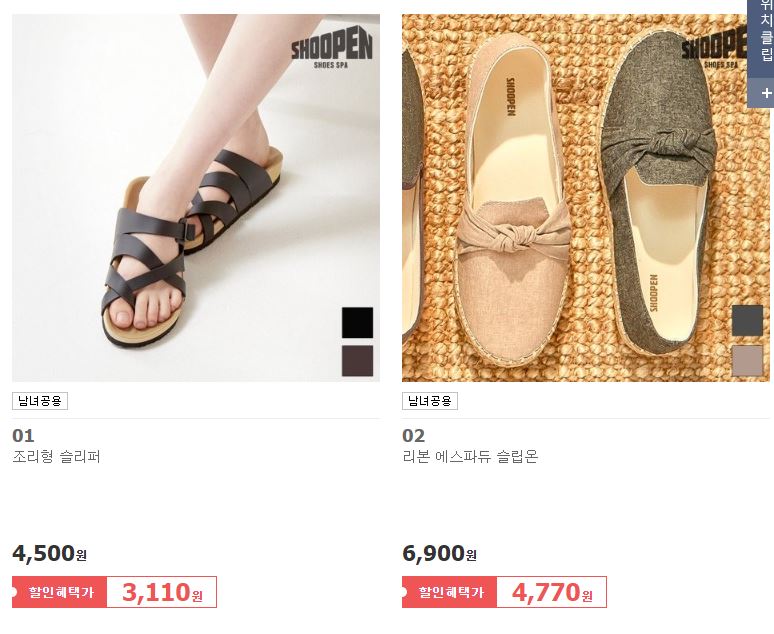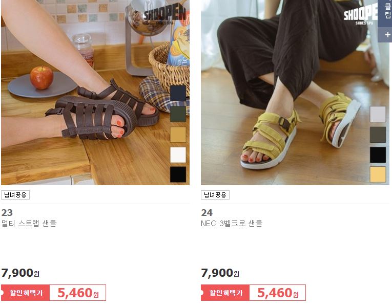 할인 품목 : 샌들, 슬리퍼, 운동화 등