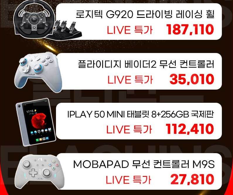 할인 품목 : 휴대용게임기, 게임 컨트롤러, 레이싱 휠 등