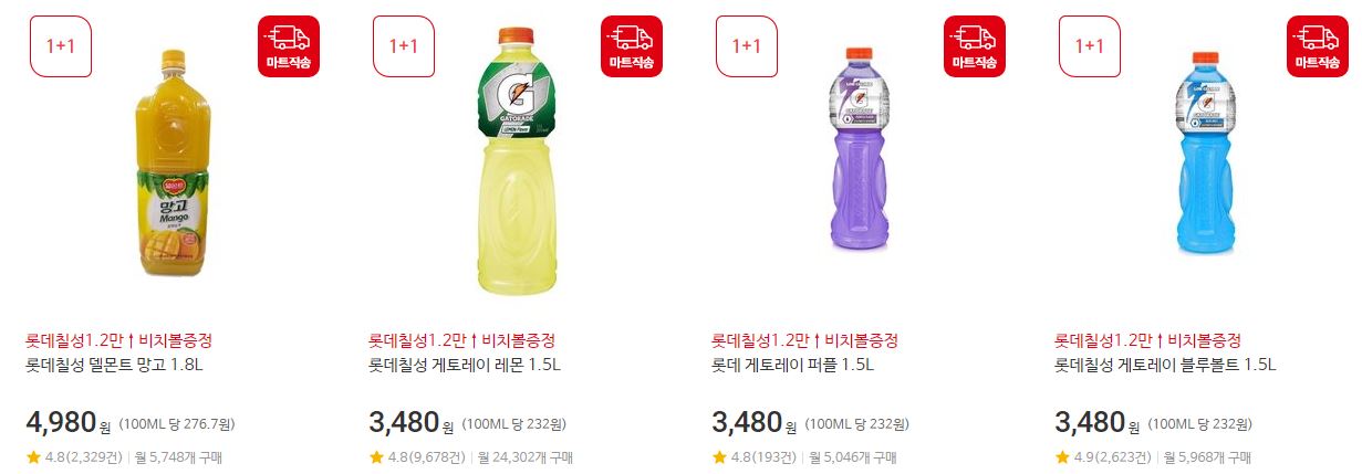 이벤트 품목 : 음료, 가공식품 등