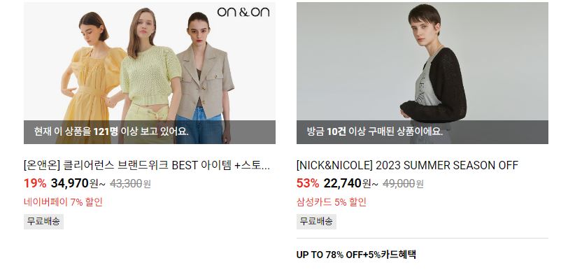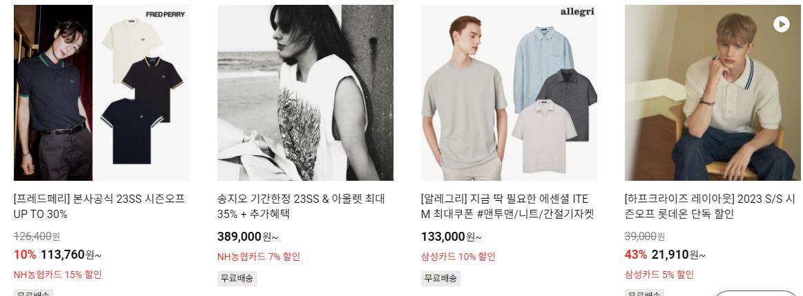 할인 품목 : 의류, 신발, 가방 등