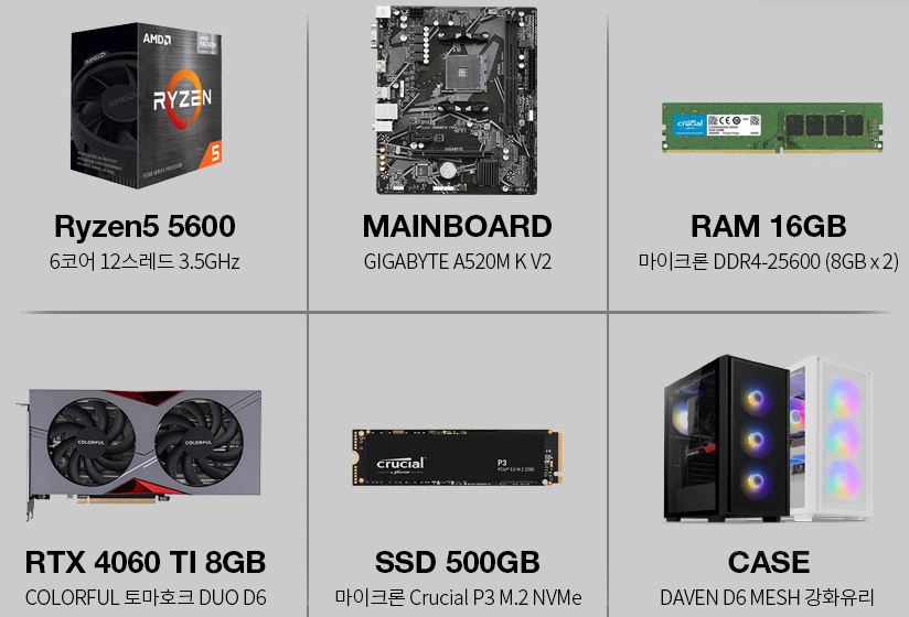 프리플로우 라이젠5 5600/RTX4060TI 게이밍컴퓨터 조립PC 할인 정보 [링크]