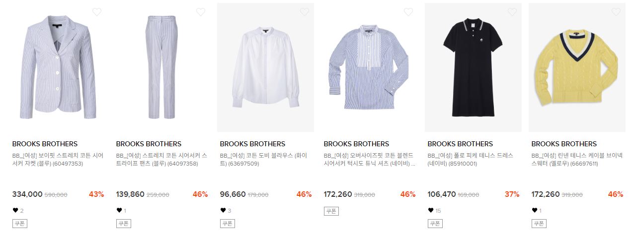 브룩스브라더스 다양한 제품을 할인 판매하네요.