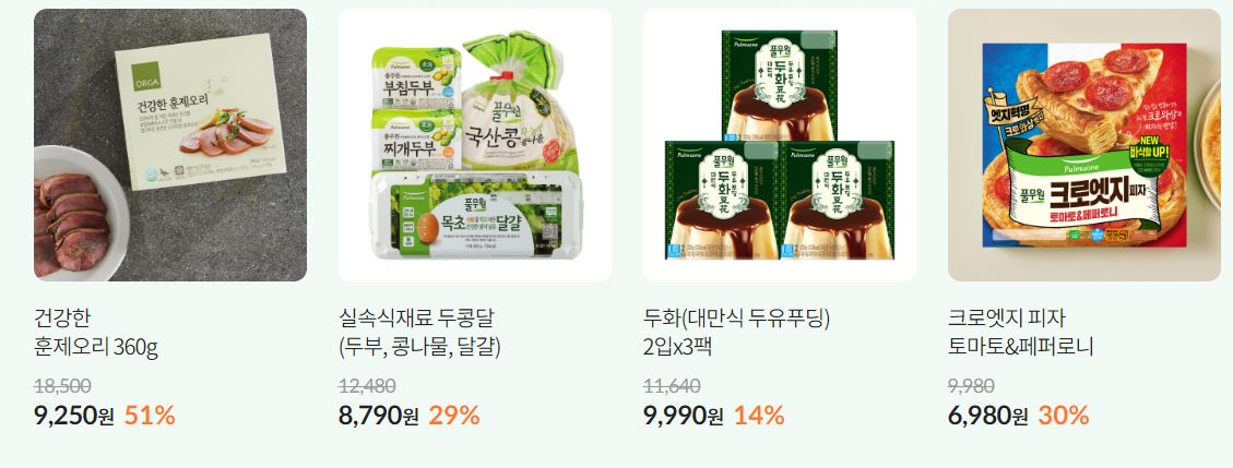 할인 품목 : 훈제오리, 피자, 돈가스 등