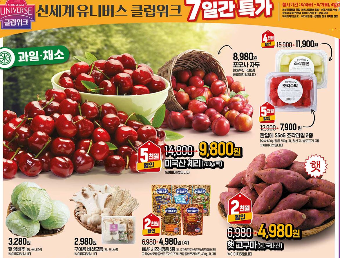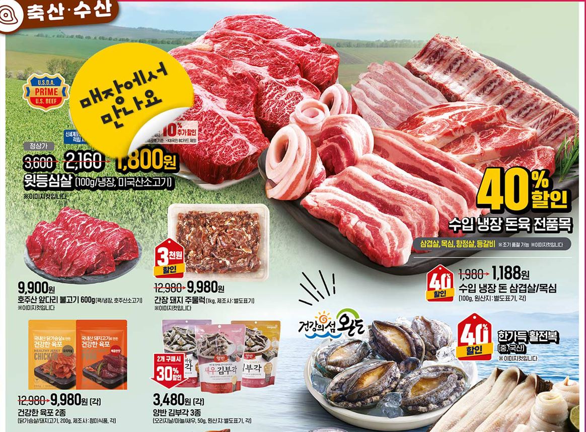 할인 품목 : 축산물, 과일, 생활용품 등