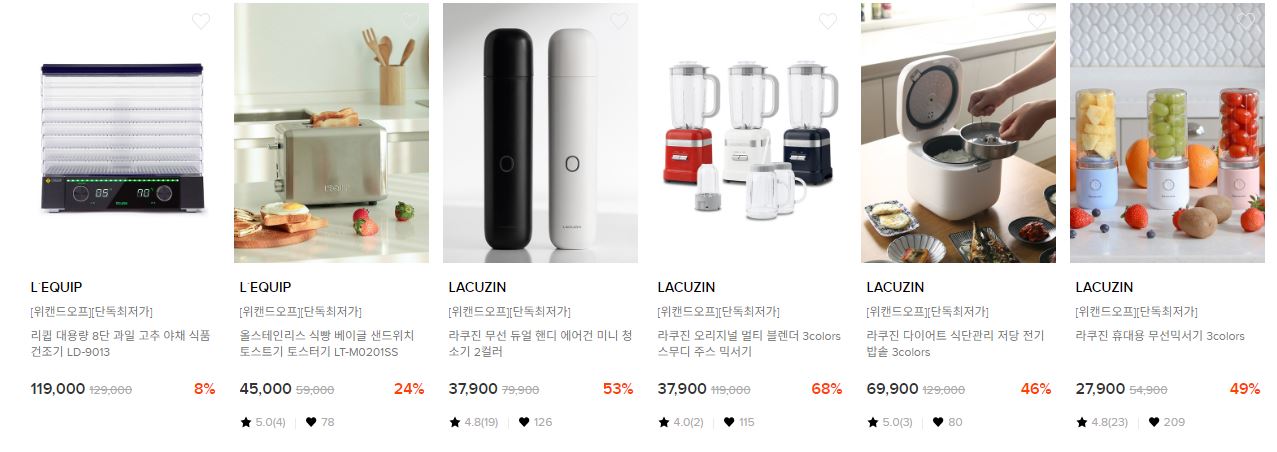 할인 품목 : 커피메이커, 화장품, 청소기 등