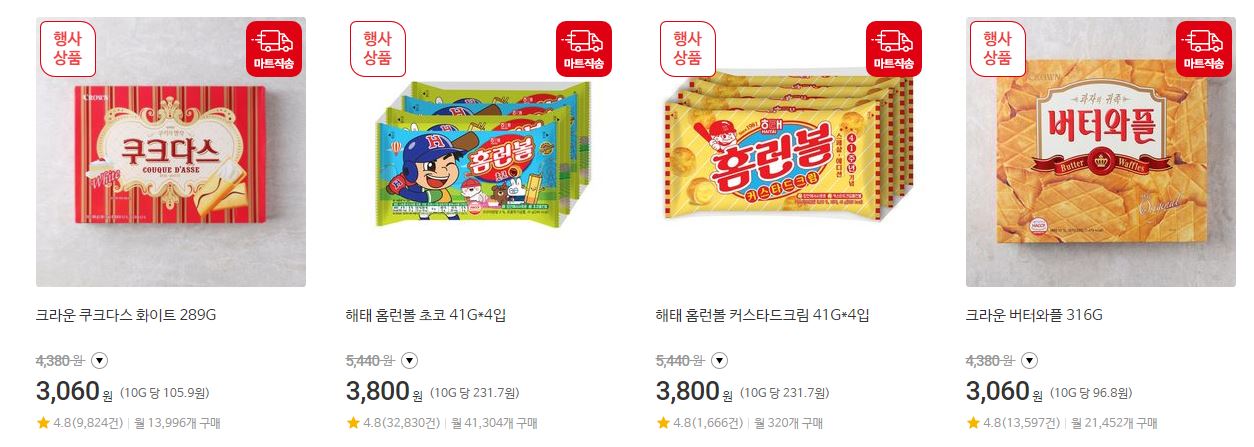 할인 품목 : 홈런볼, 버터와플, 펩시콜라 등