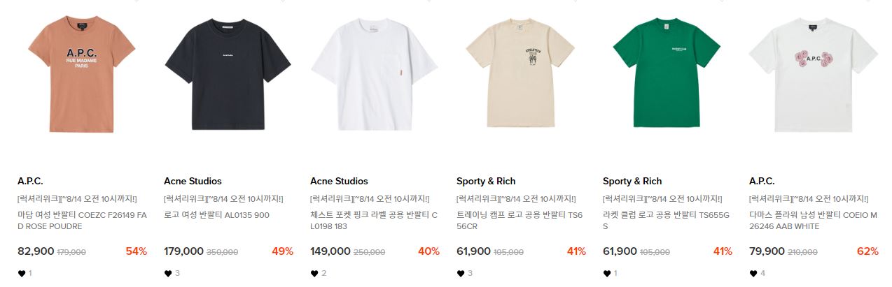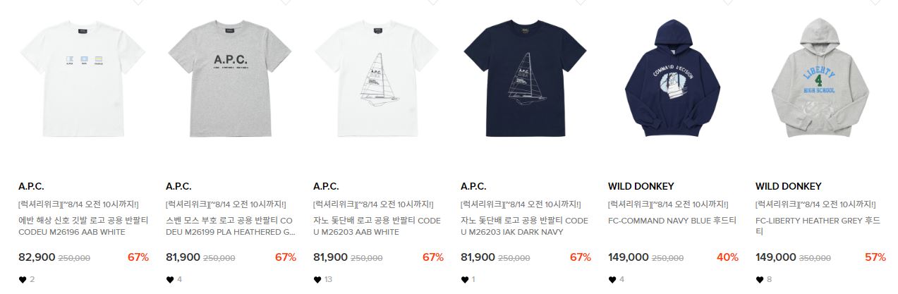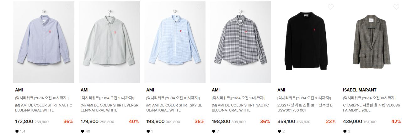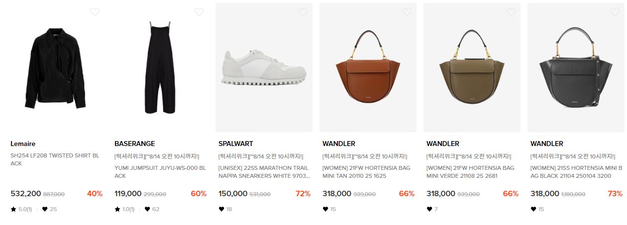 할인 품목 : 의류, 가방, 신발, 지갑 등