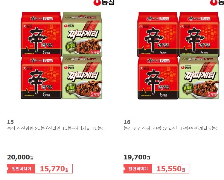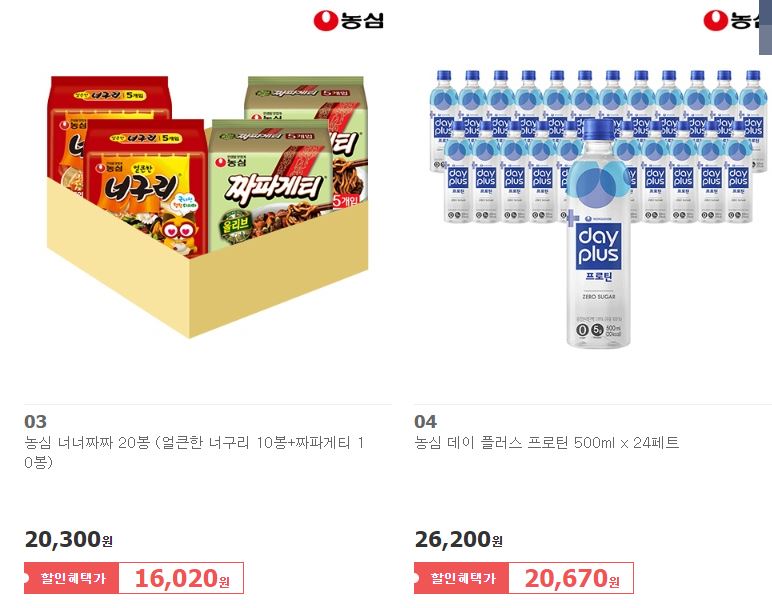 농심 다양한 제품을 할인 판매하네요.