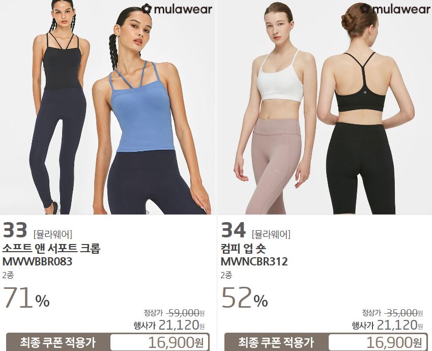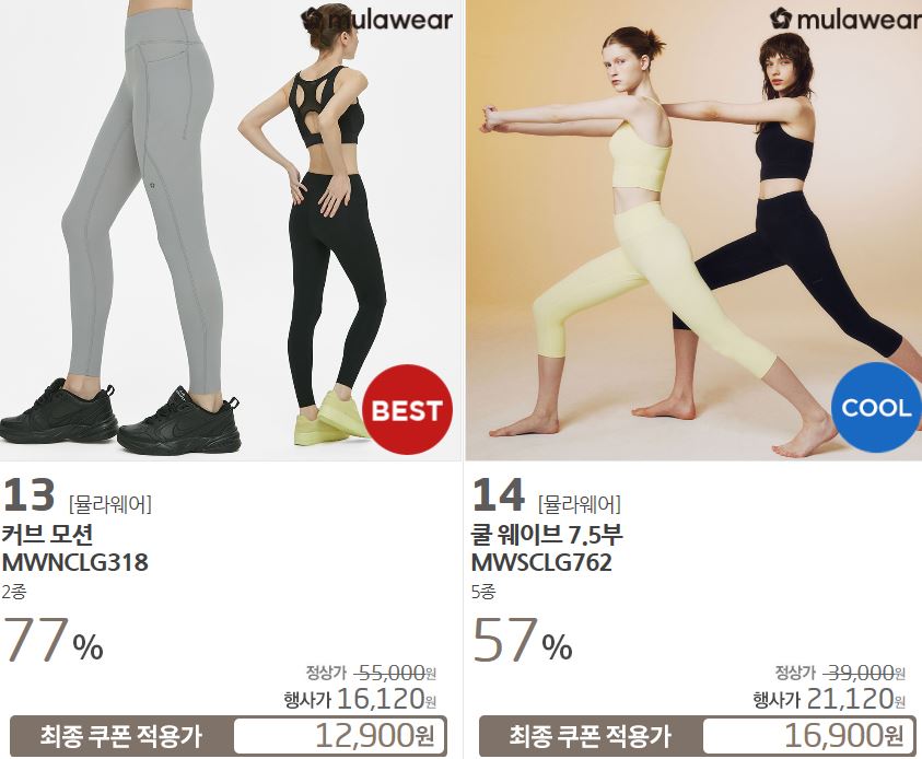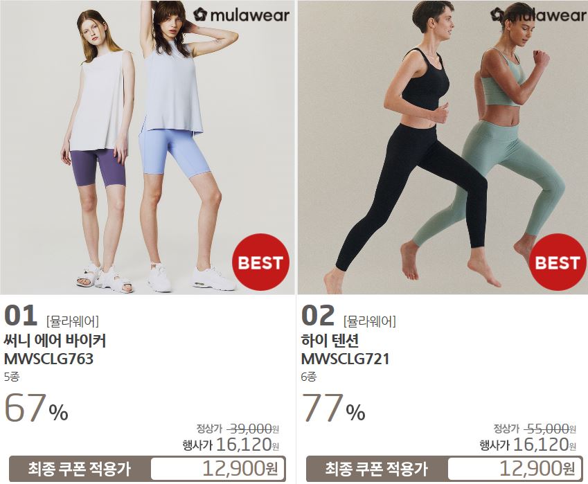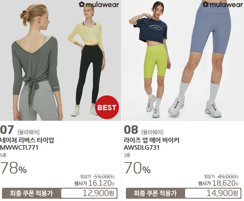 할인 품목 : 티셔츠, 레깅스 등