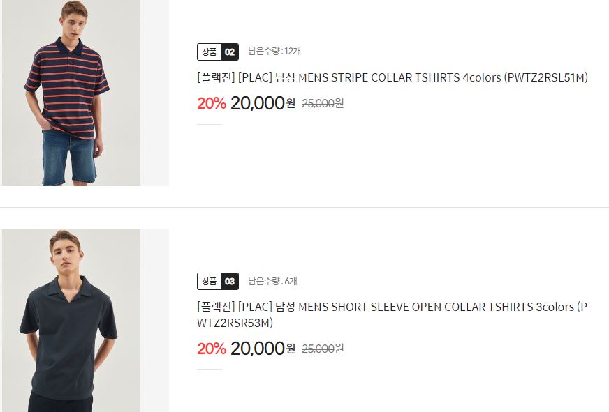 할인 품목 : 티셔츠, 팬츠 등