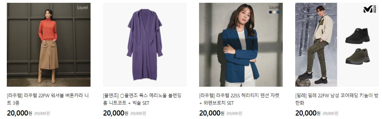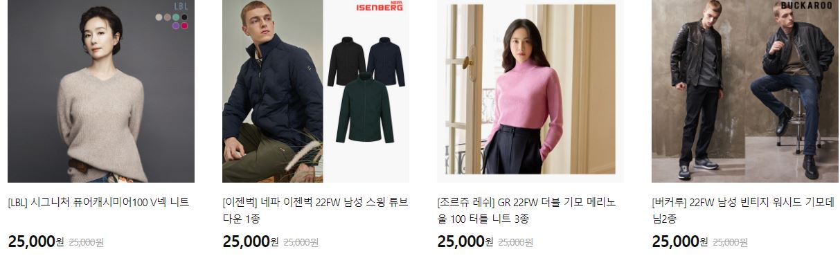 할인 품목 : 티셔츠, 니트, 점퍼 등