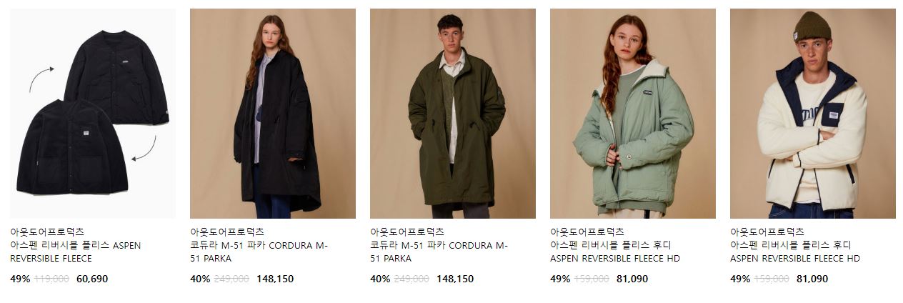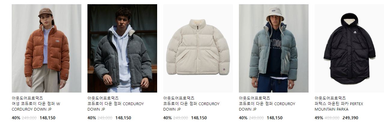 아웃도어 프로덕츠 다양한 제품을 할인 판매하네요.