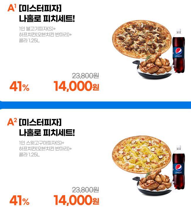 할인 메뉴 : 나홀로 피치세트, 딴짠 피츄세트