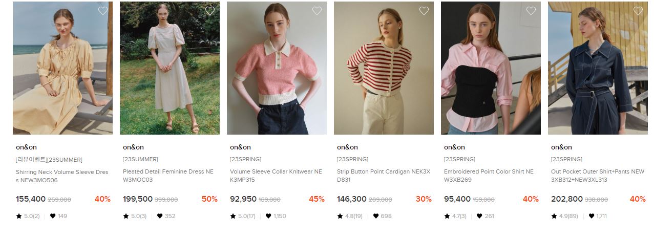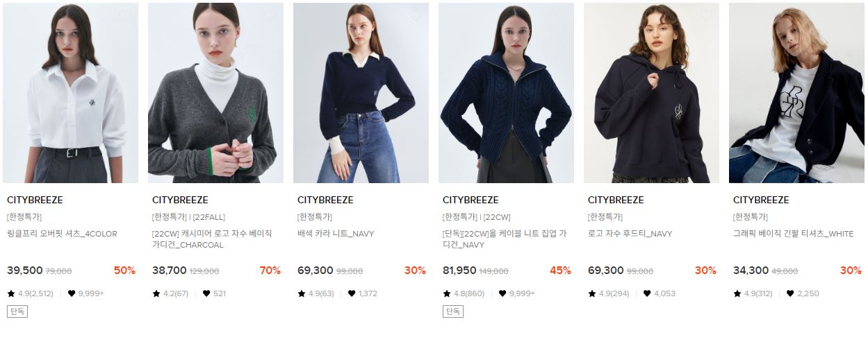 할인 품목 : 셔츠, 원피스, 티셔츠 등