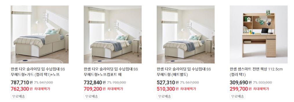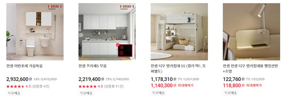 한샘 다양한 제품을 할인 판매하네요.