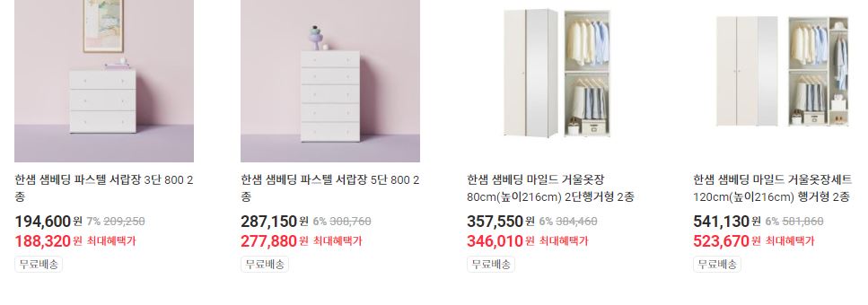 할인 품목 : 서랍장, 침대 등
