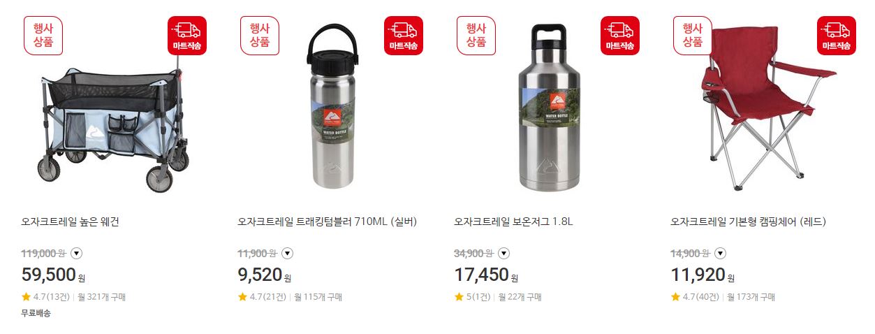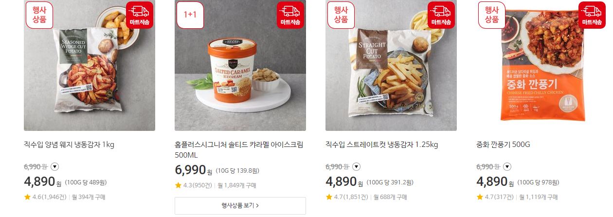 할인 품목 : 가공식품, 주방용품 등