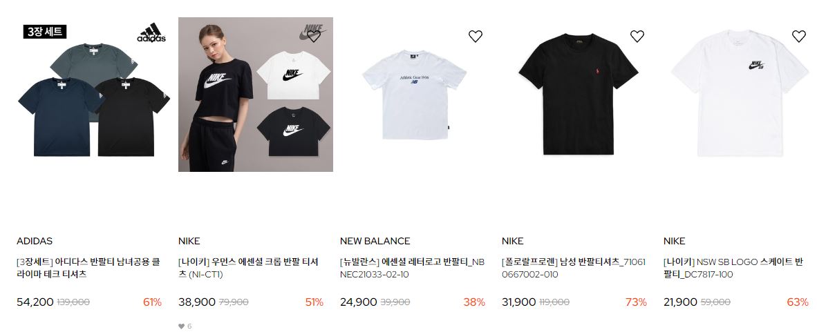 할인 품목 : 티셔츠, 팬츠, 운동화 등