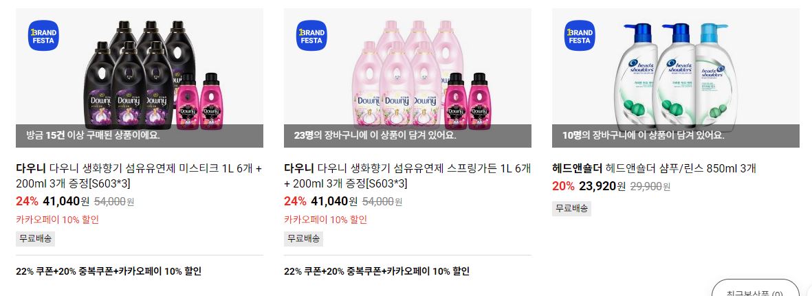 할인 품목 : 섬유유연제, 칫솔, 면도날 등
