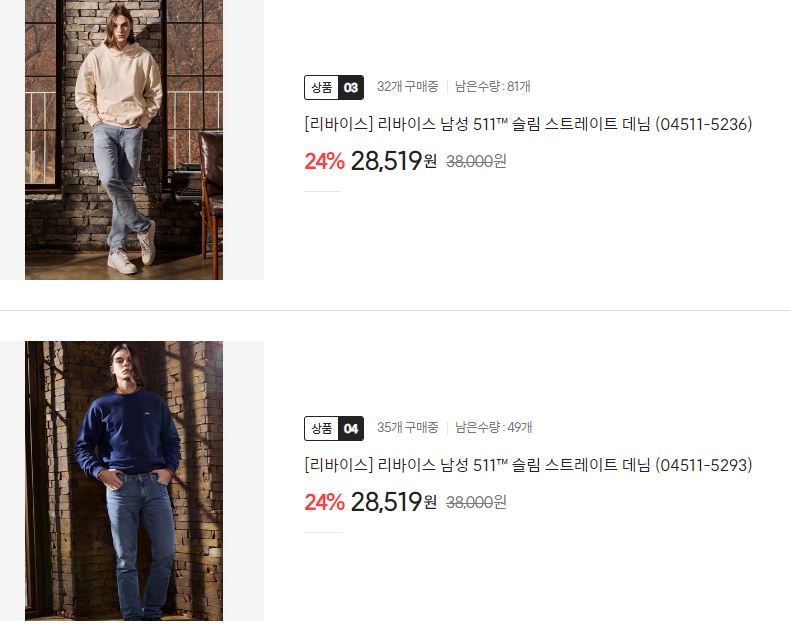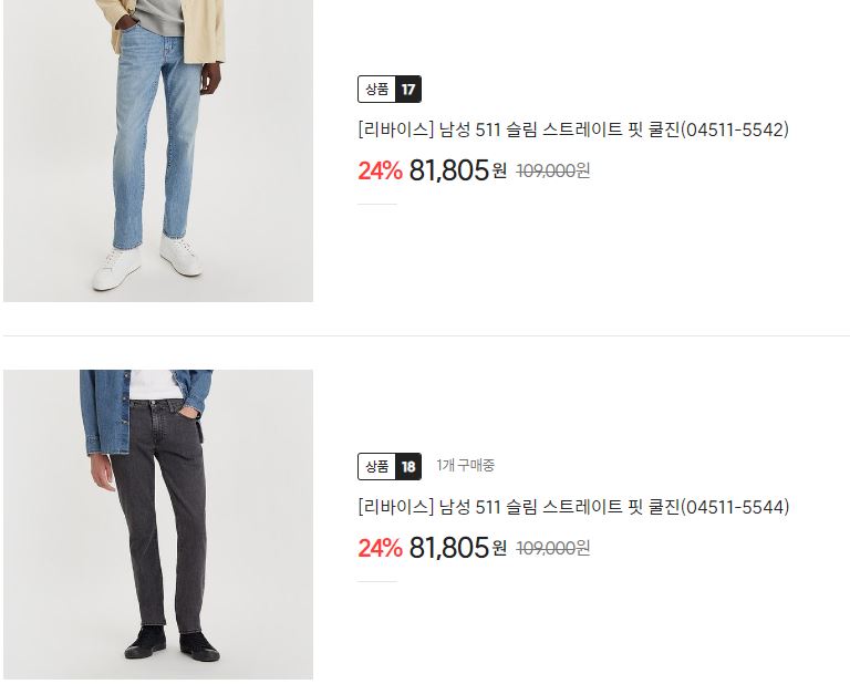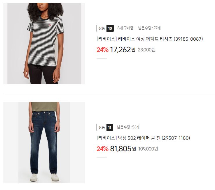 리바이스 다양한 제품을 할인 판매하네요.