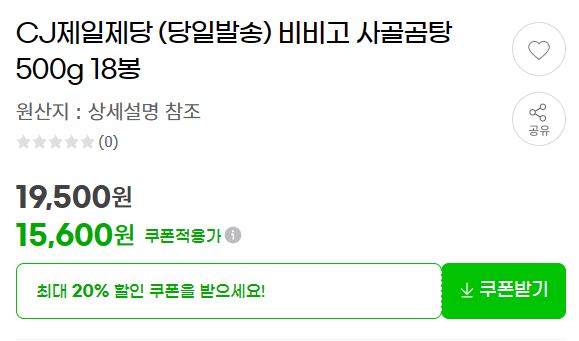CJ제일제당 비비고 사골곰탕 500g 18봉 할인 정보 [링크]