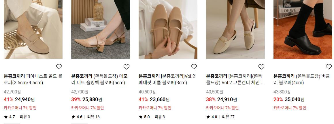 할인 품목 : 로퍼, 펌프스 등