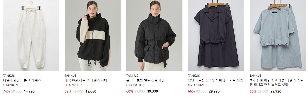 할인 품목 : 티셔츠, 원피스, 스커트 등