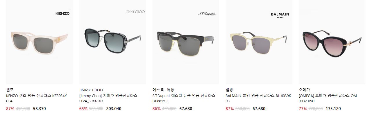 할인 품목 : 선글라스, 안경테