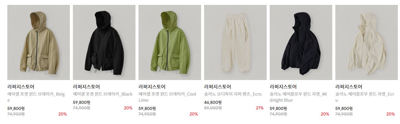 할인 품목 : 자켓, 팬츠 등
