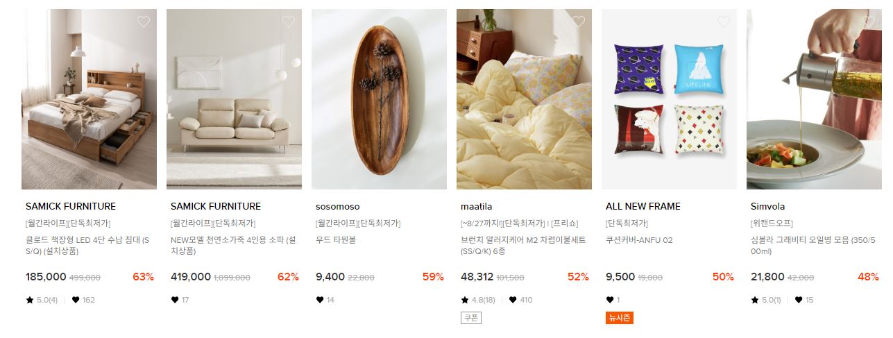 W컨셉 다양한 제품을 할인 판매하네요.