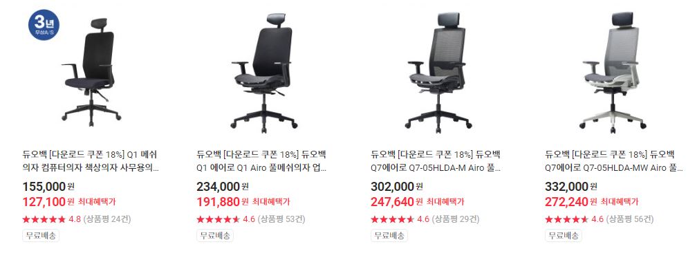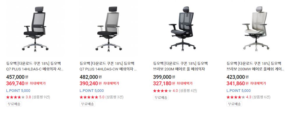 듀오백 다양한 제품을 할인 판매하네요.