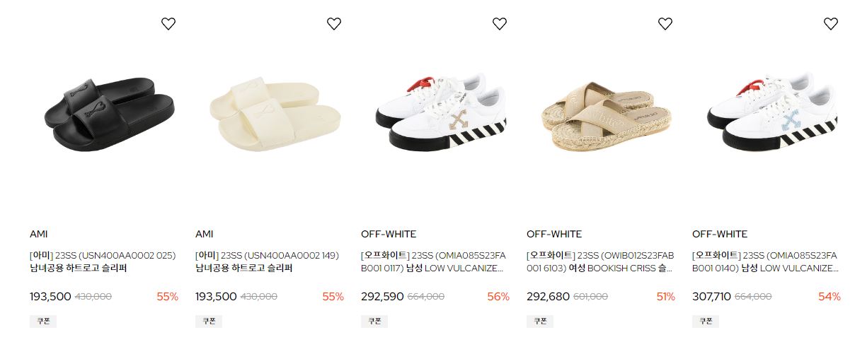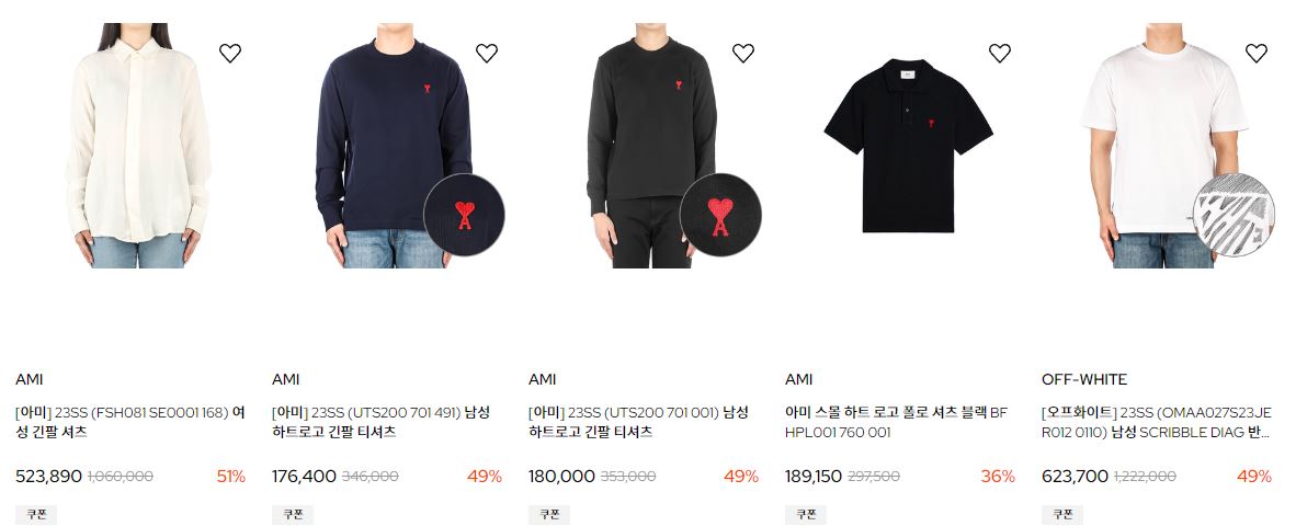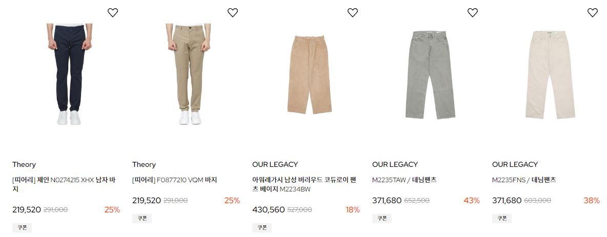 할인 품목 : 티셔츠, 팬츠, 신발 등