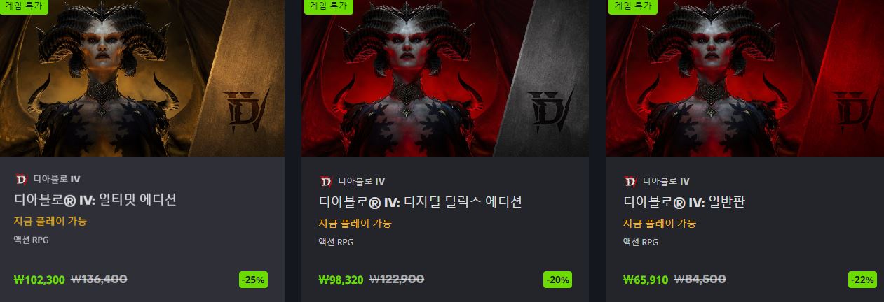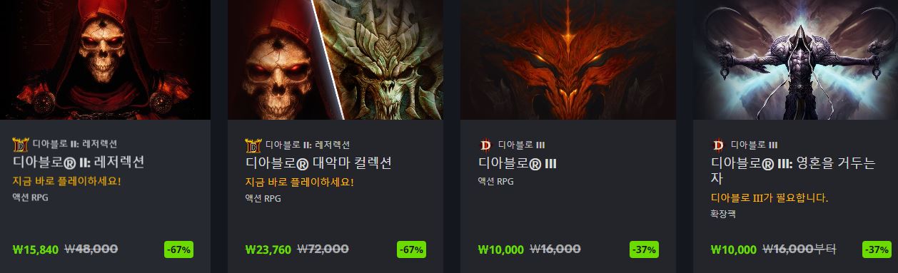할인 게임 : 디아블로4, 스타크래프트2 등
