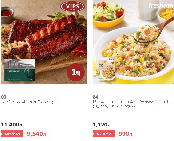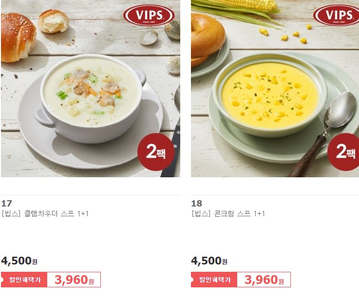 할인 품목 : 바비큐 폭립, 피자, 스프 등