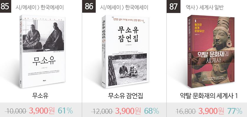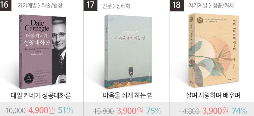 할인 품목 : 소설, 자기계발서, 인문학 등