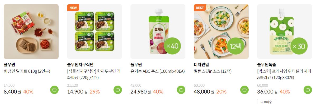 풀무원 다양한 제품을 할인 판매하네요.