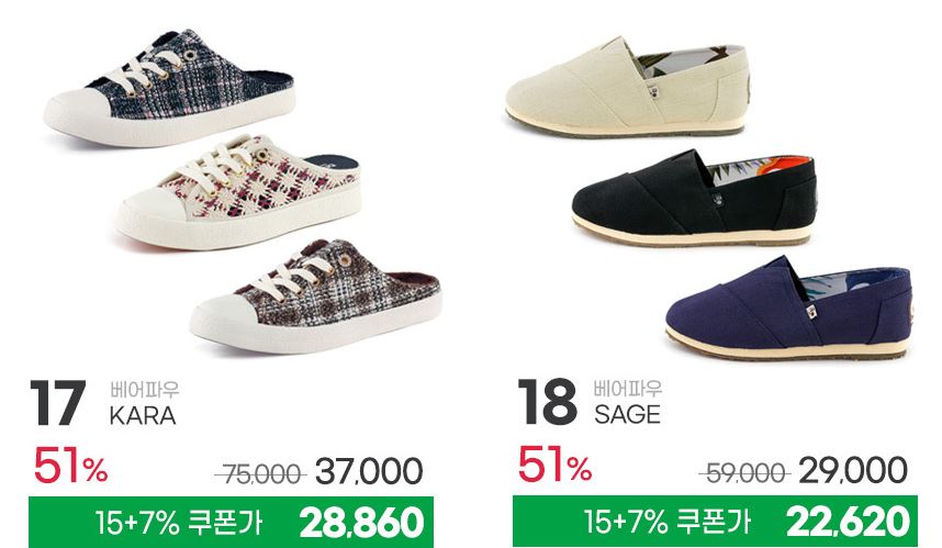 할인 품목 : 운동화, 구두, 샌들 등