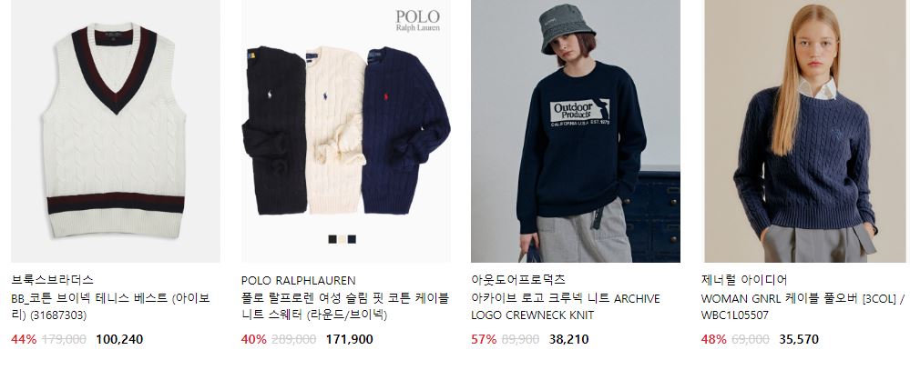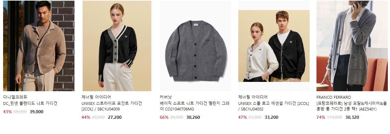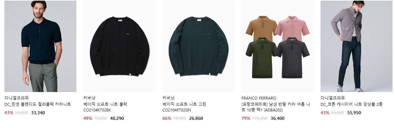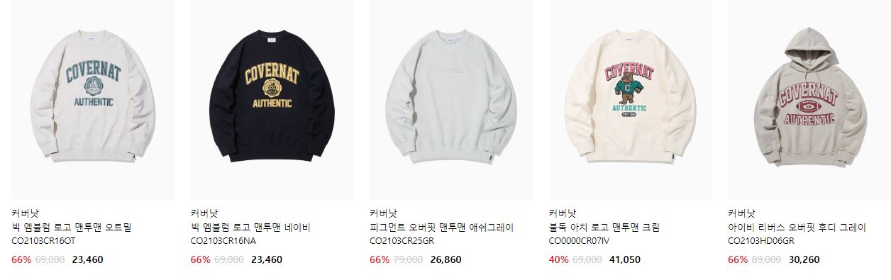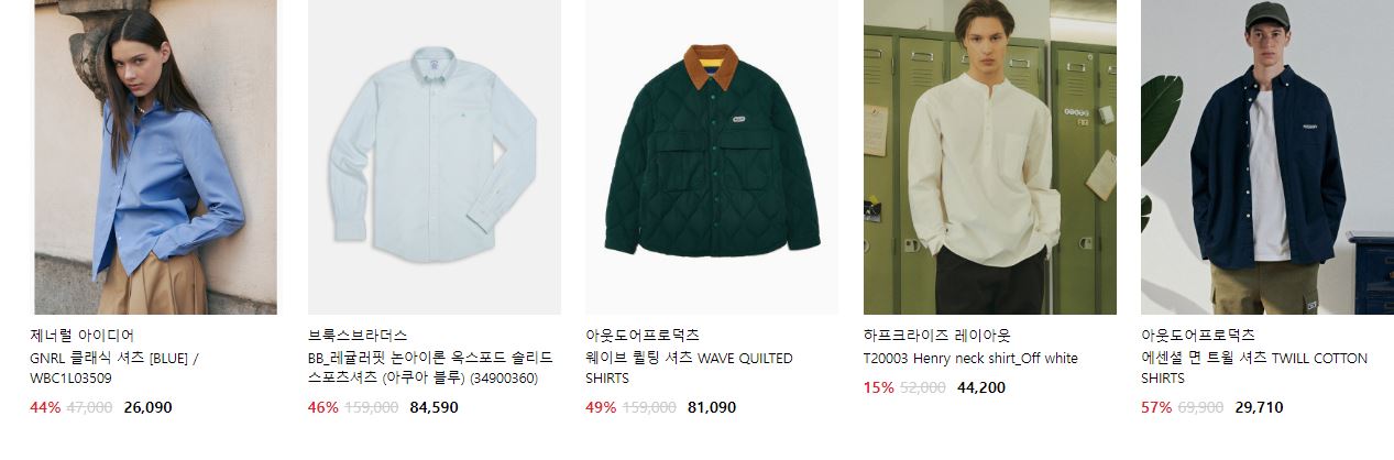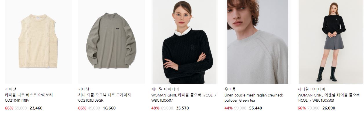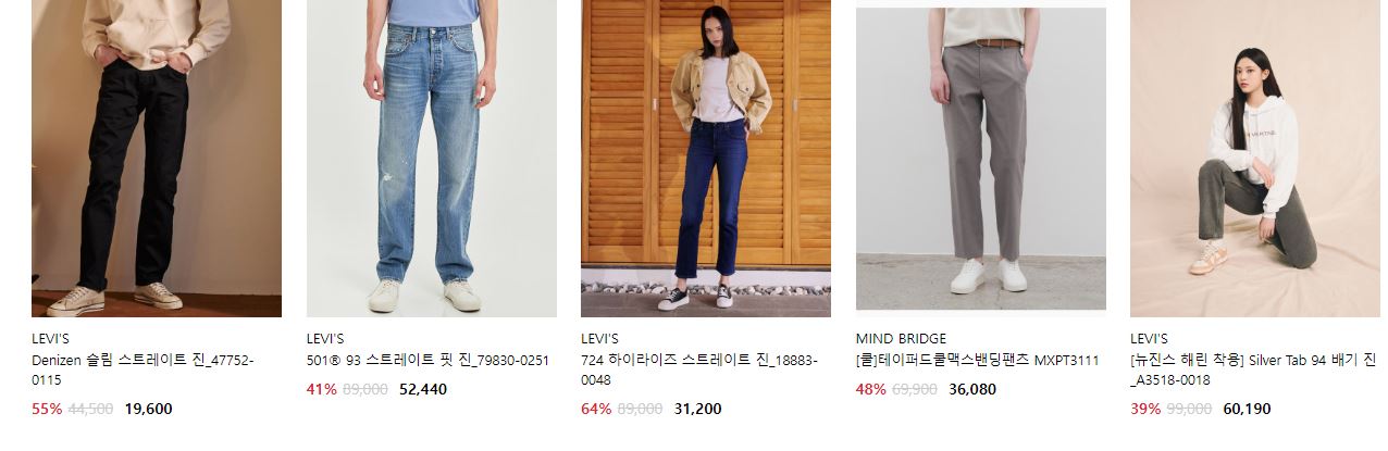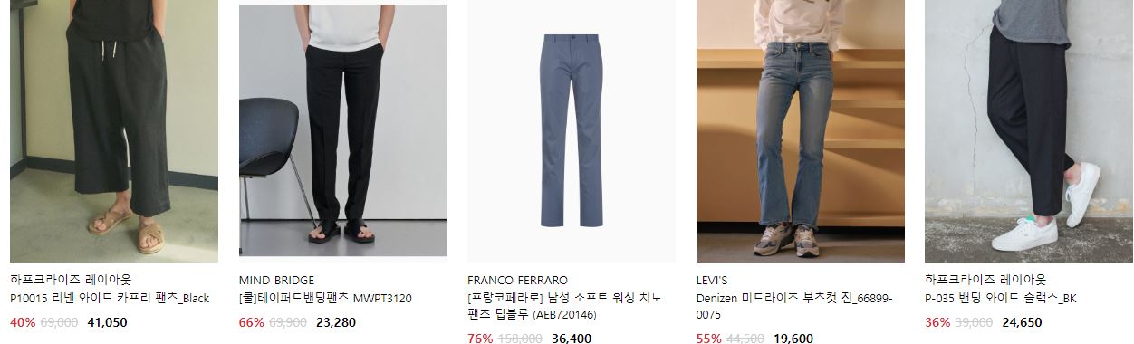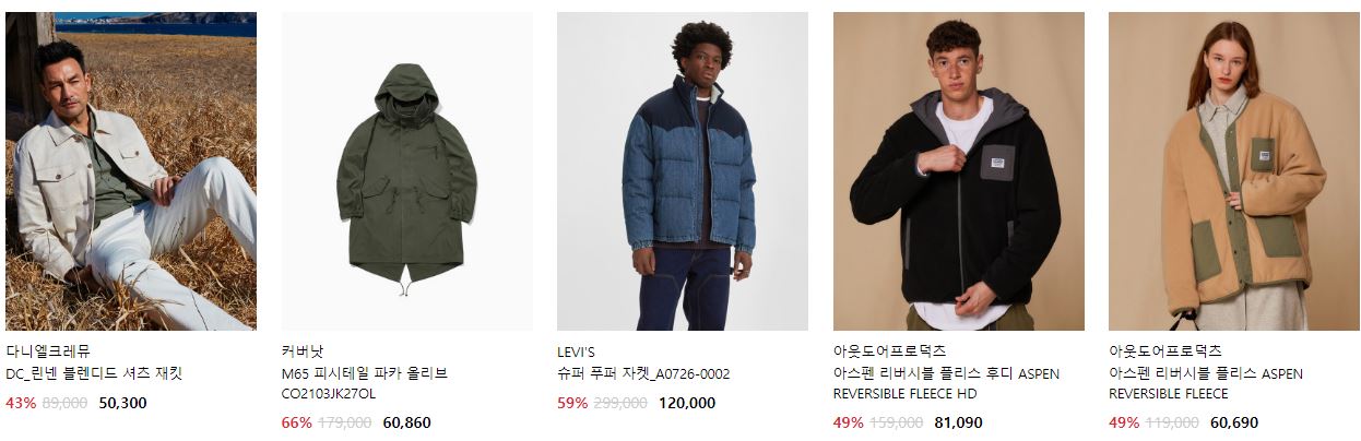 할인 품목 : 팬츠, 티셔츠, 자켓 등
