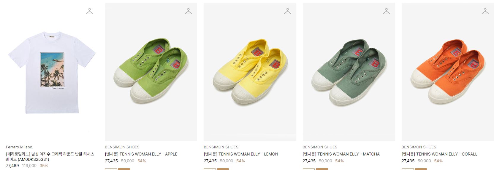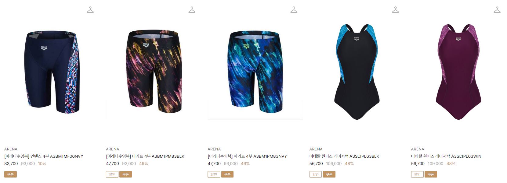 할인 품목 : 티셔츠, 신발, 수영복 등