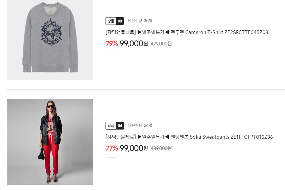 쟈딕앤볼테르 다양한 제품을 할인 판매하네요.