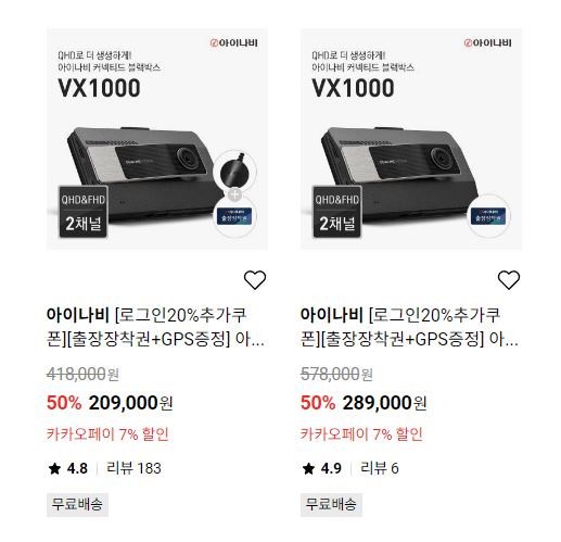 할인 품목 : 블랙박스, 무선충전거치대 등