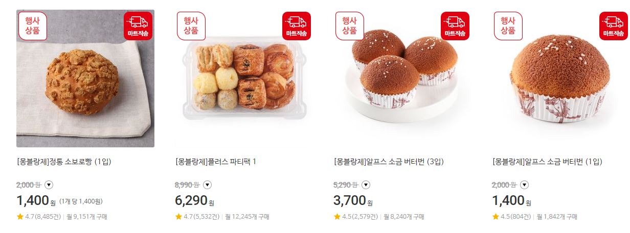 할인 품목 : 단팥빵, 슈크림빵, 버터번 등