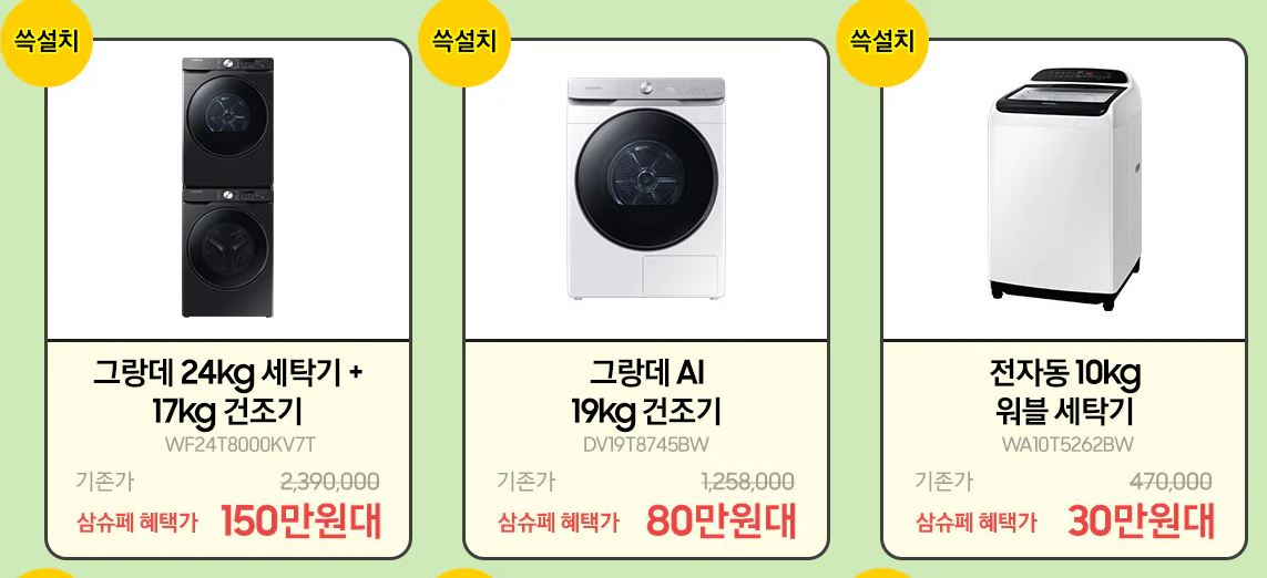 할인 품목 : 냉장고, 무선청소기, 건조기 등